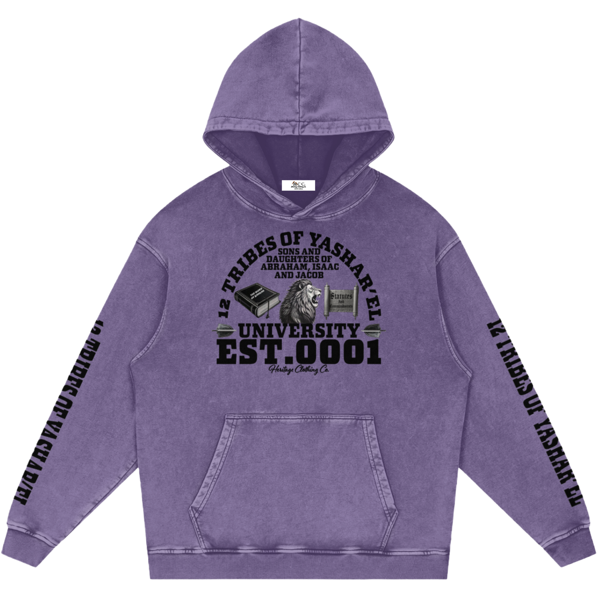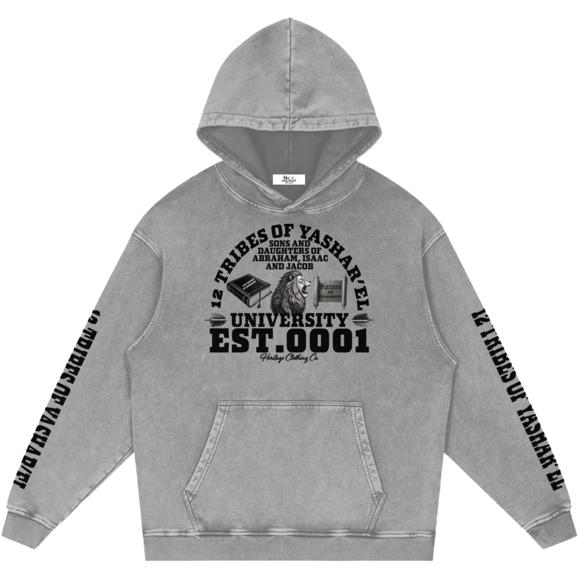 The “12 Tribes University” snow-washed hoodie declares the awakening of a chosen people — called to teach the Torah and walk in truth in the last days.