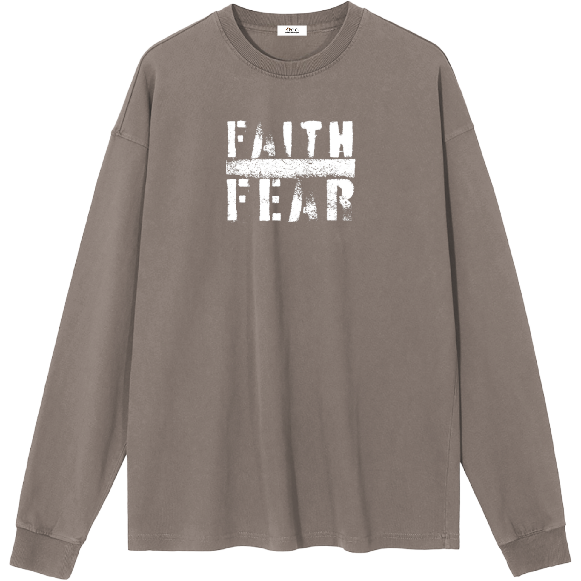 Step into autumn and winter with quiet confidence in the "Faith Over Fear" women’s essential long-sleeve t-shirt, inspired by Isaiah 41:10: "Fear not; for I am with you."