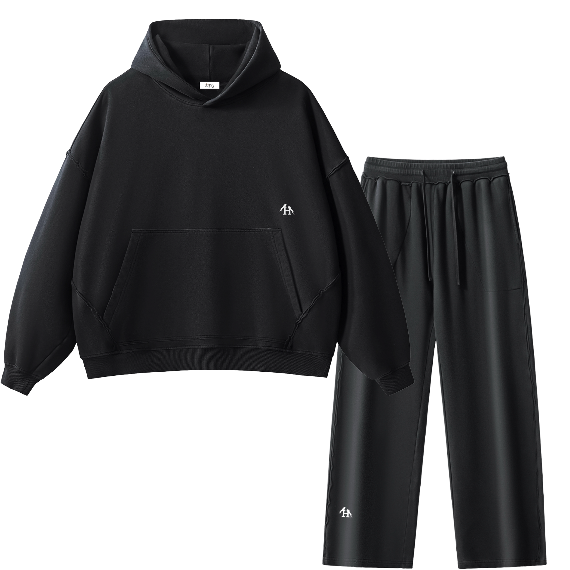 Heritage Essential Raw-Edge Black Sweatsuit Bundle