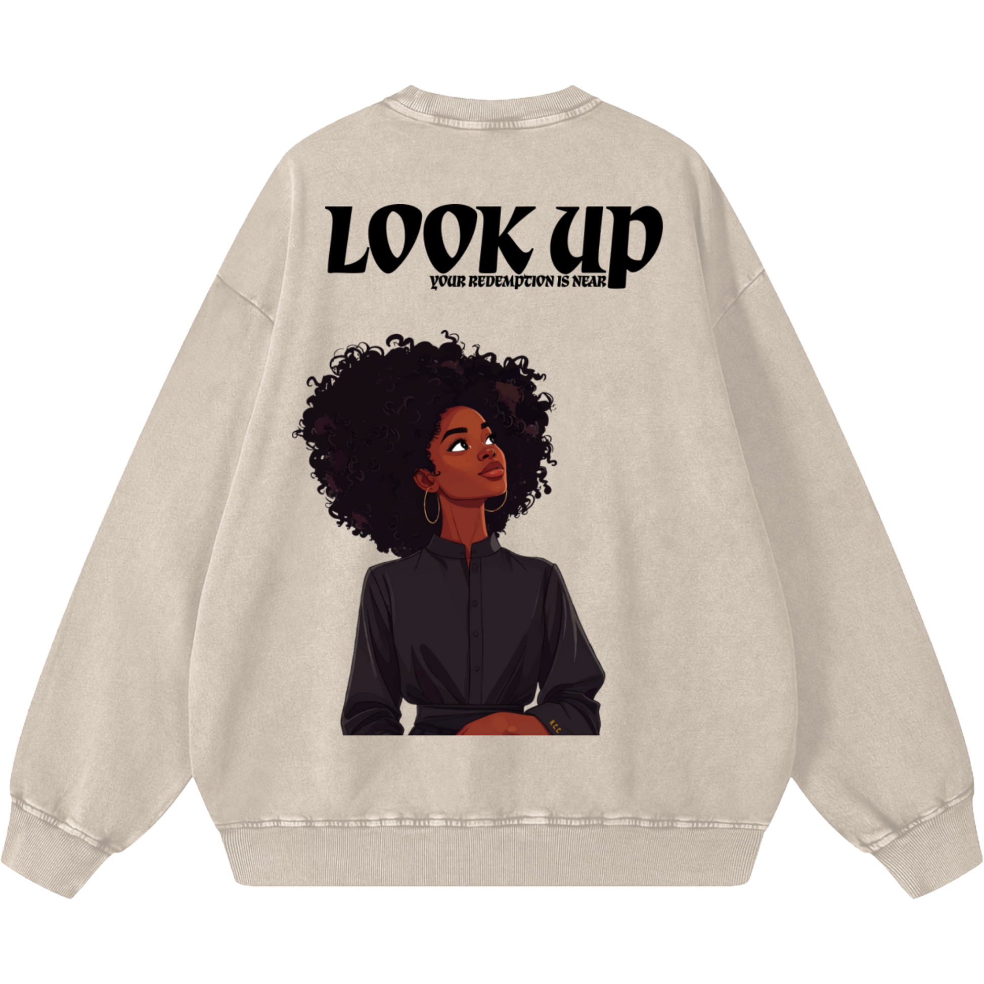 Lift your eyes with hope in the “Look Up” women’s oversized snow washed sweatshirt.