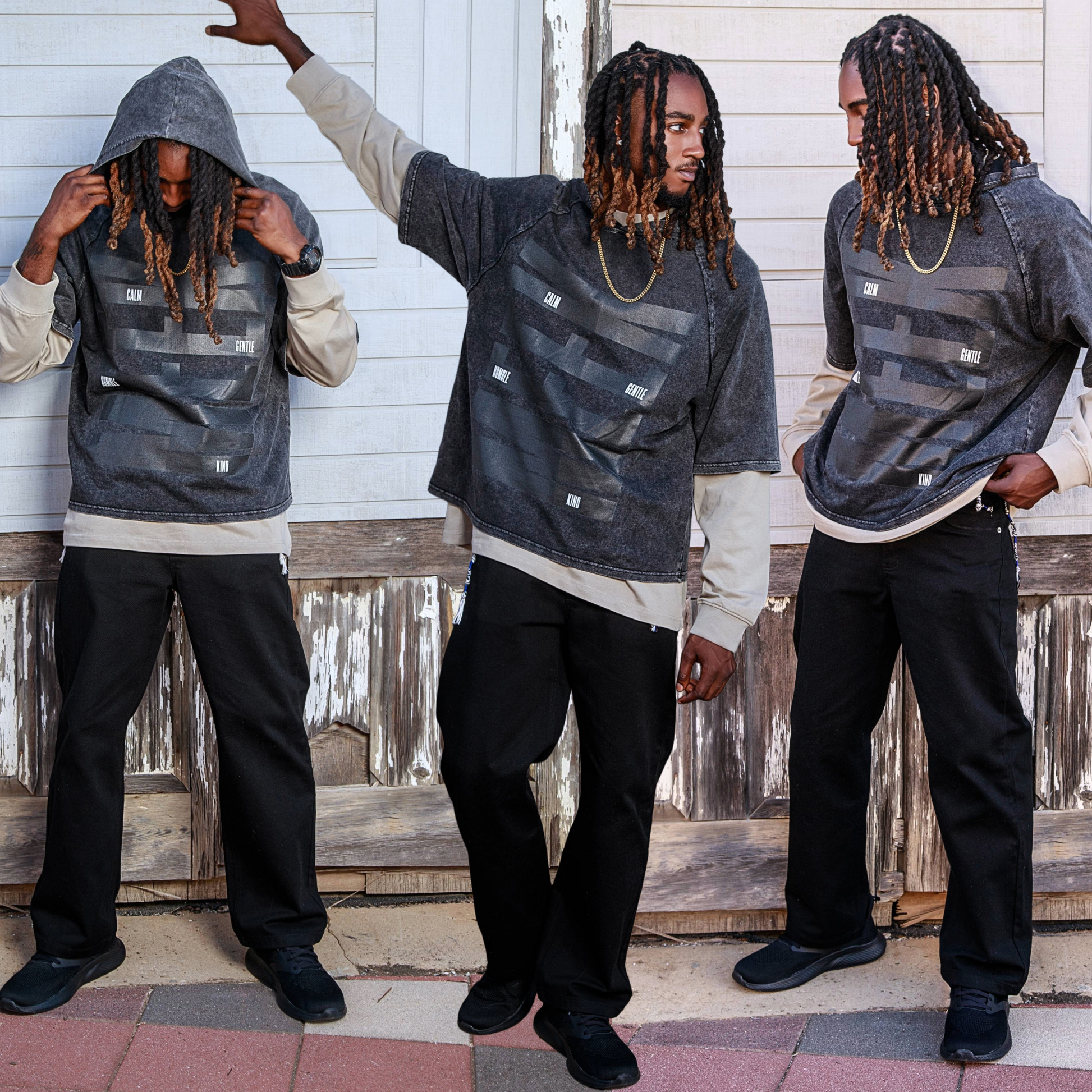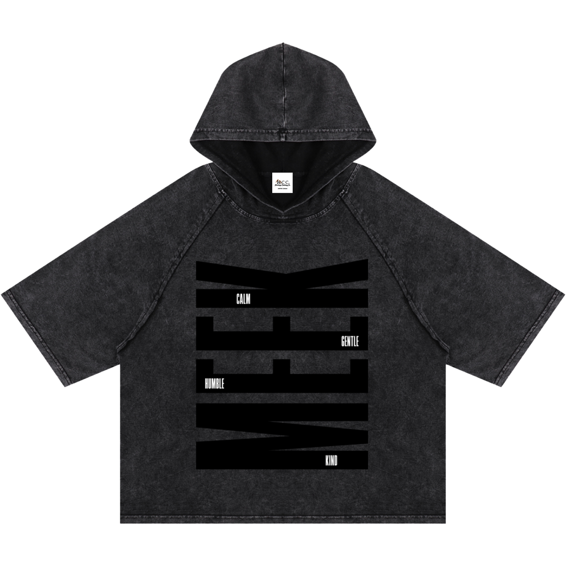 Walk in the quiet strength of the Ruach with the "Meek" men's hooded wide-cut short-sleeve t-shirt, inspired by Matthew 5:5, “Blessed are the meek: for they shall inherit the earth.”