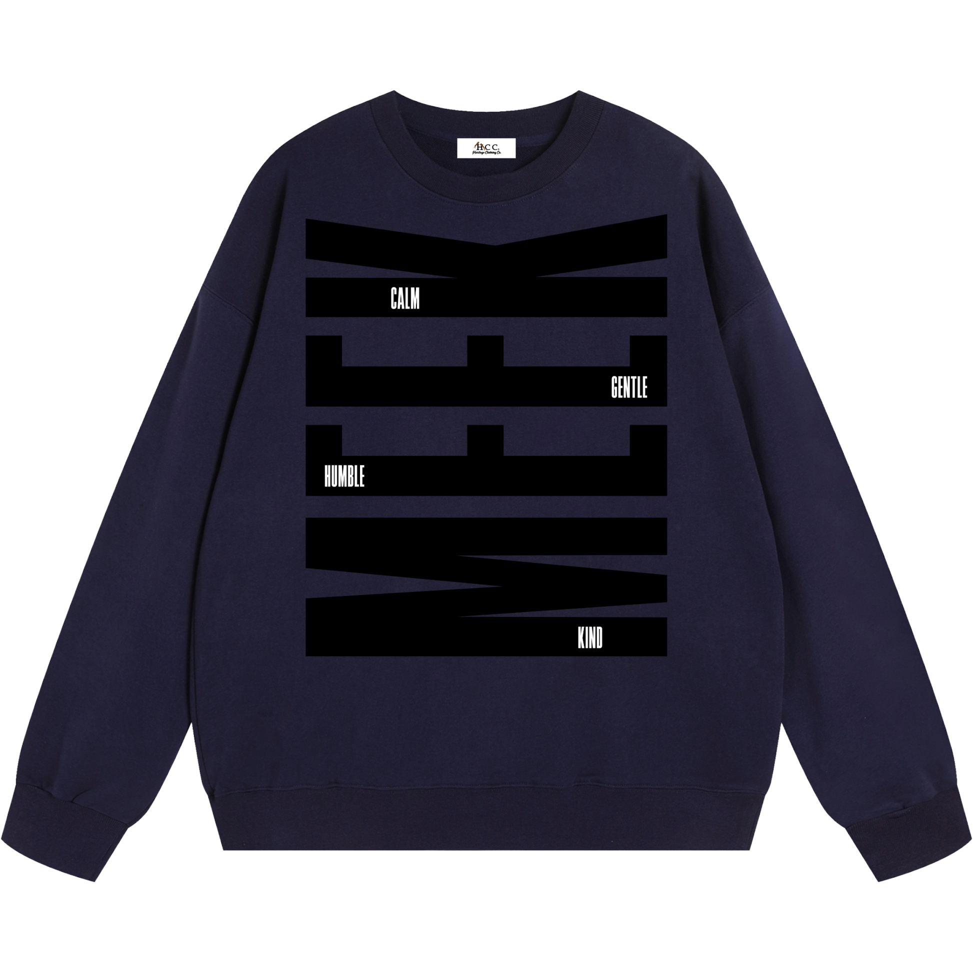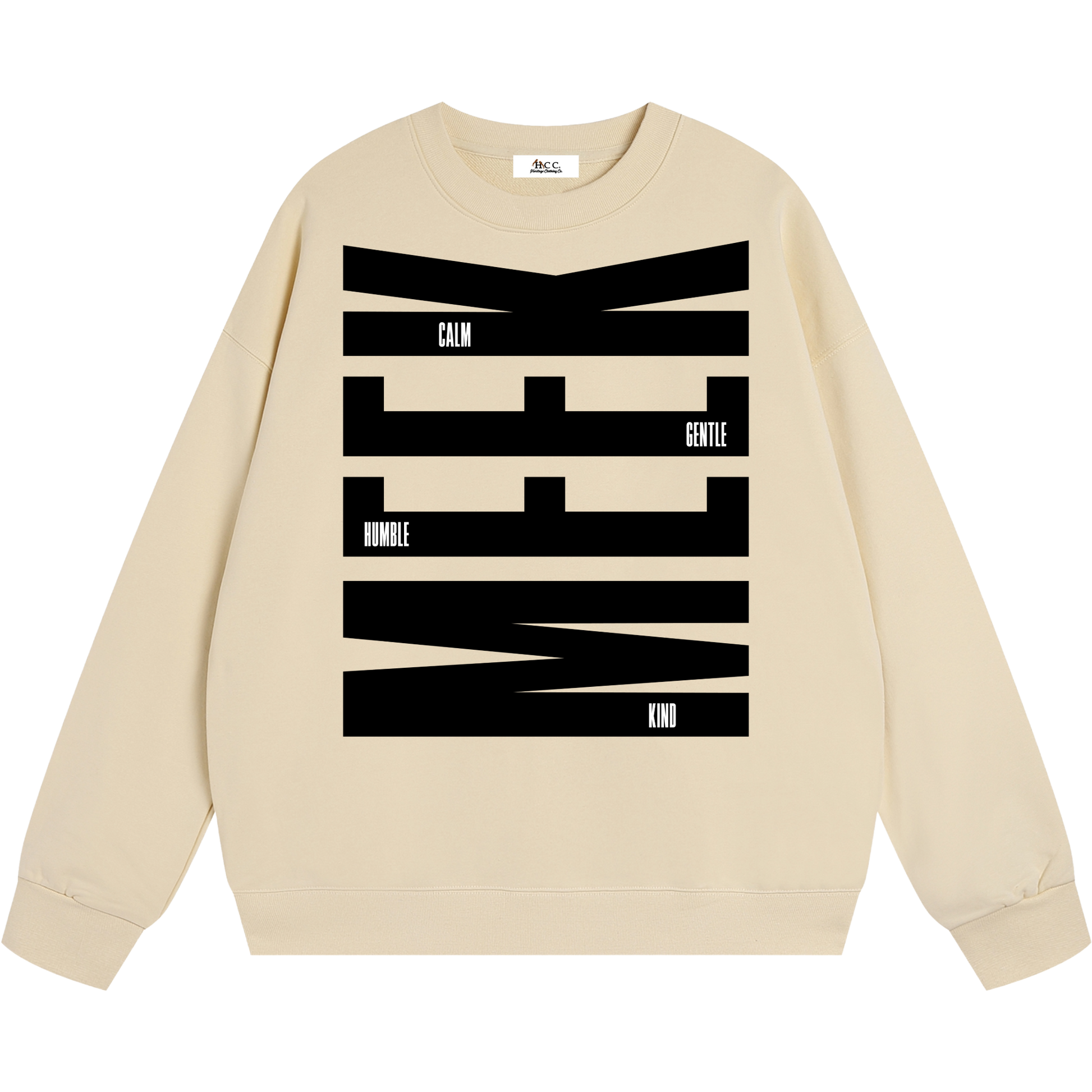 Walk in the quiet strength of the Spirit with the “Meek” sweatshirt, inspired by Matthew 5:5: “Blessed are the meek: for they shall inherit the earth.”