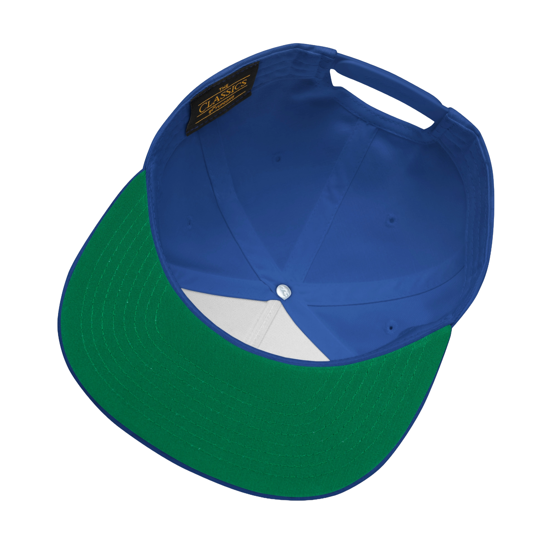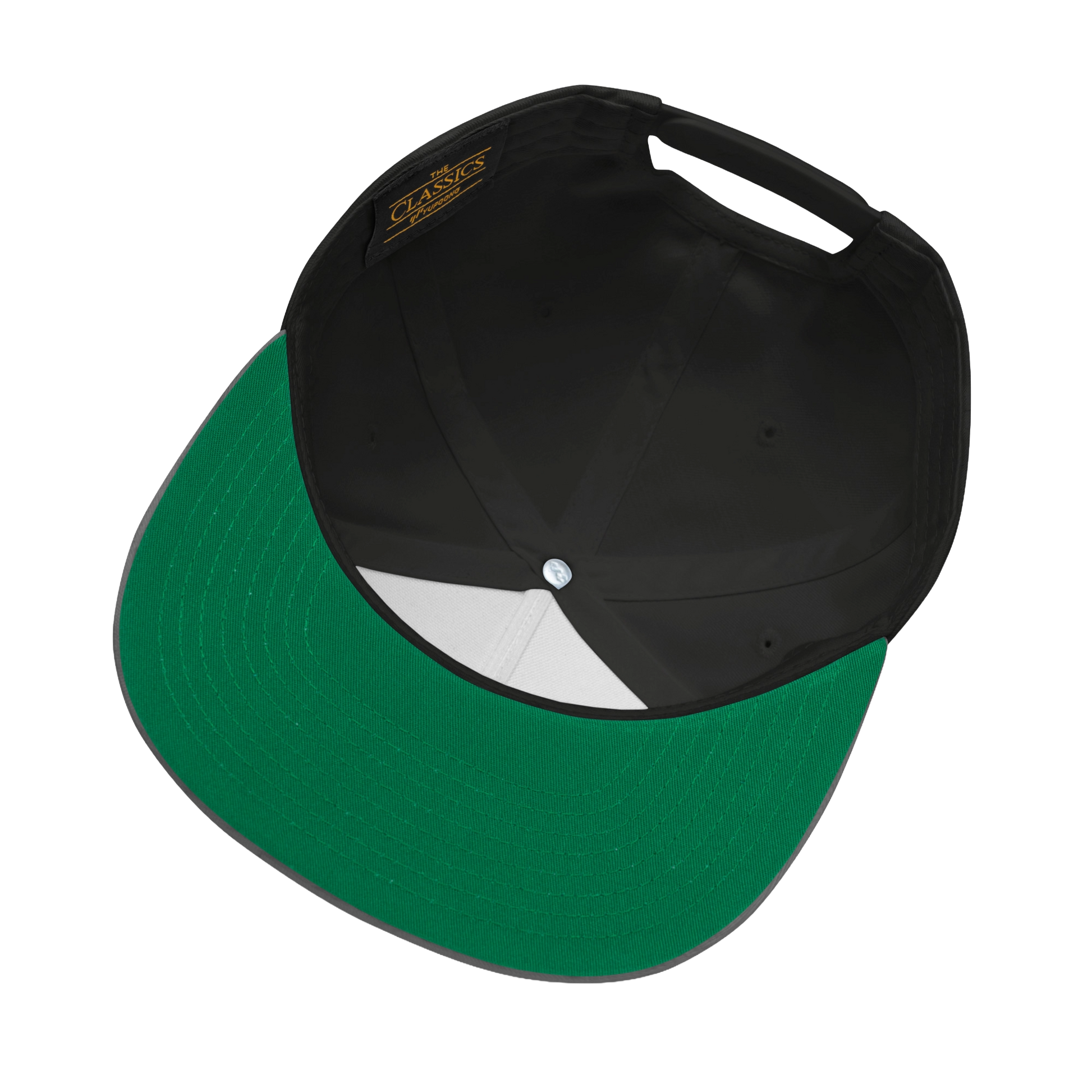 Crafted from 100% cotton twill, this structured five-panel cap features a high-profile fit, sewn eyelets for breathability, and a classic green undervisor for a subtle pop of color. The adjustable snapback closure ensures a comfortable and secure fit for all wearers.