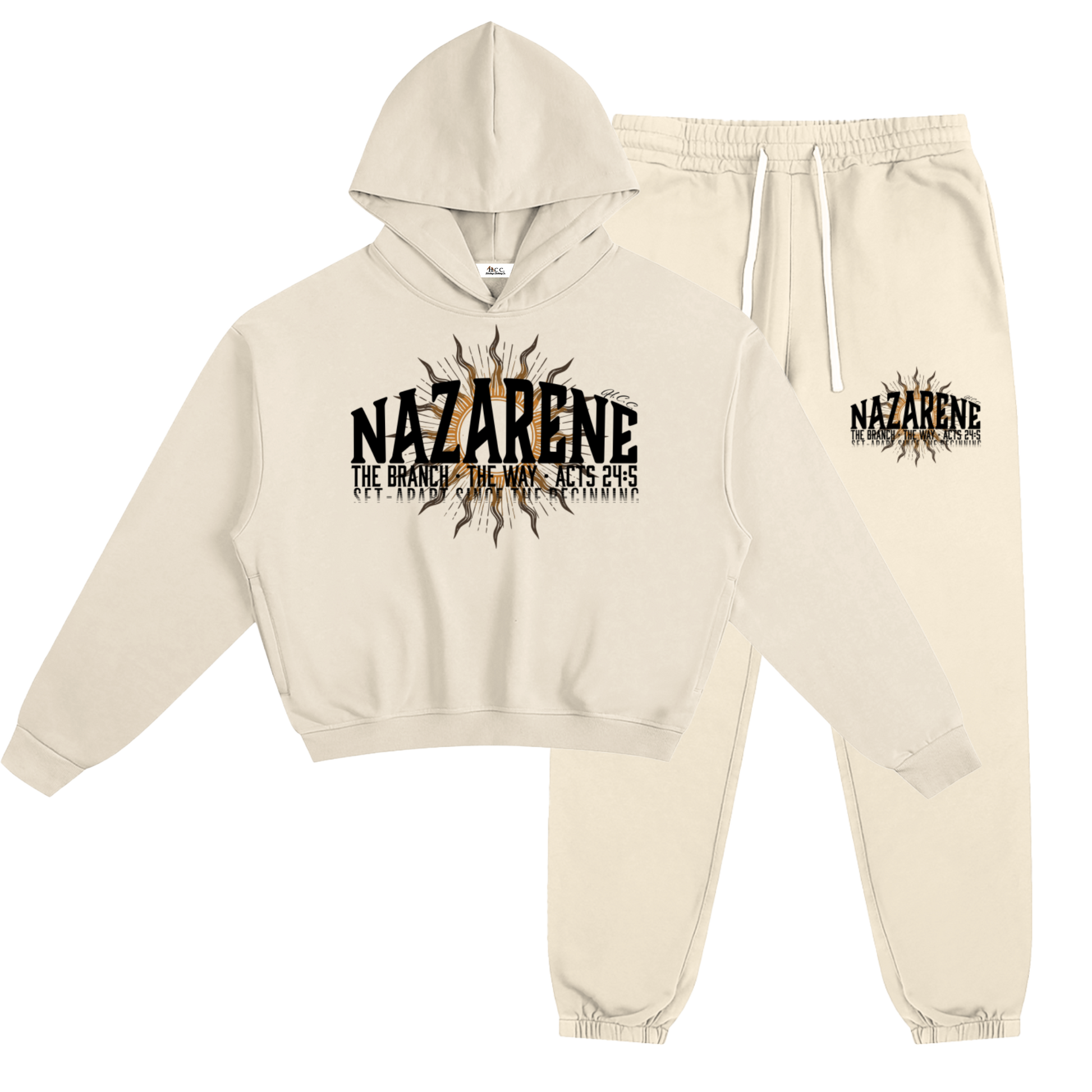 Step boldly into the legacy of faith with the apricot "Nazarene" women’s essential hoodie + sweatpants bundle, inspired by Acts 24:5, where the followers of Yahusha were first called Nazarenes—guardians and watchmen of the Way.