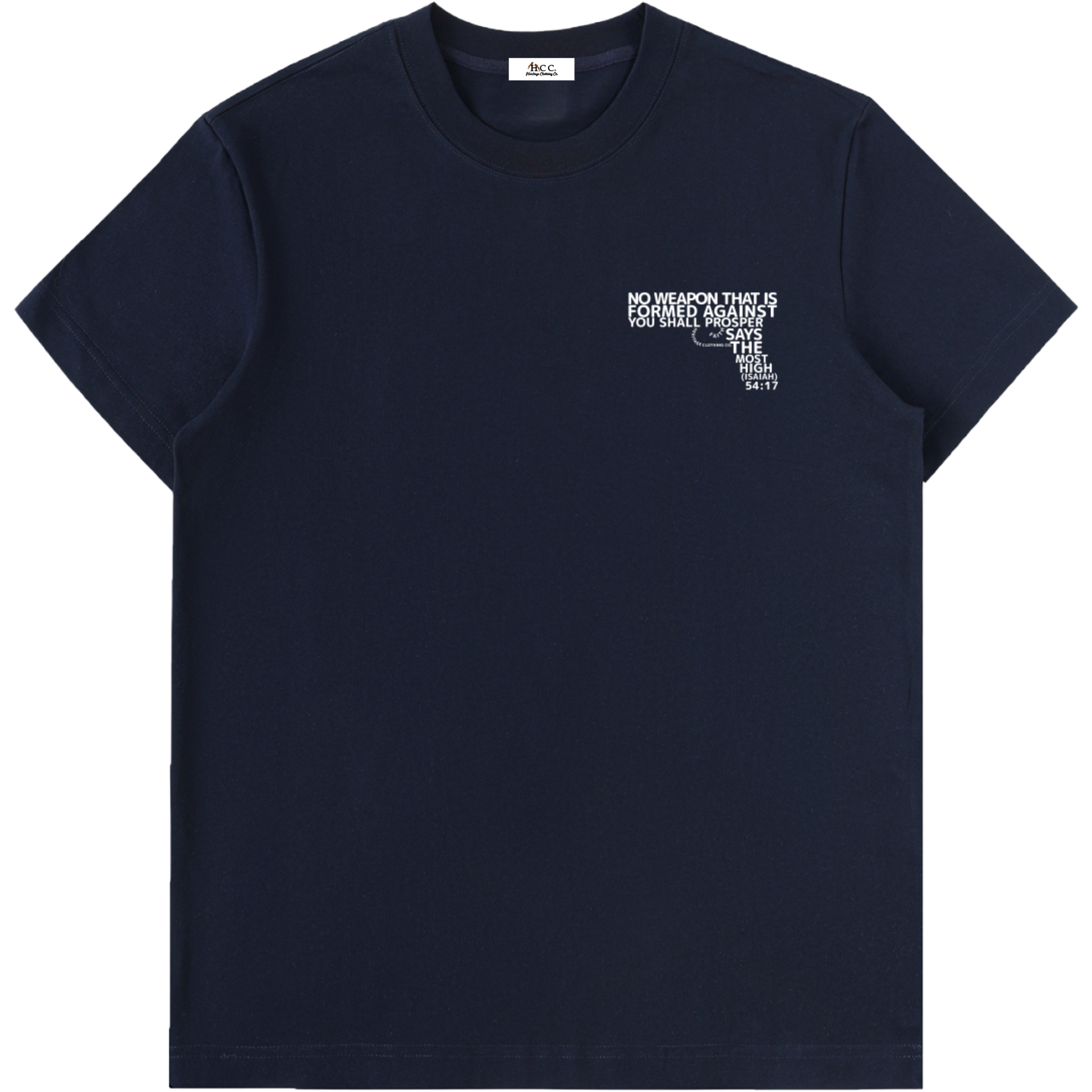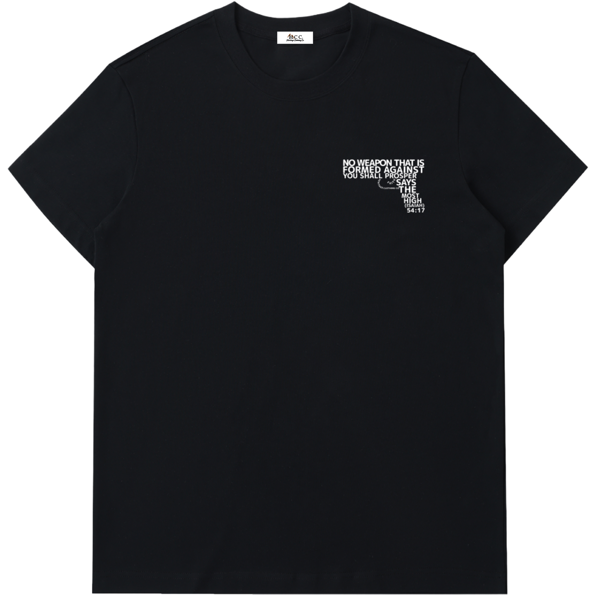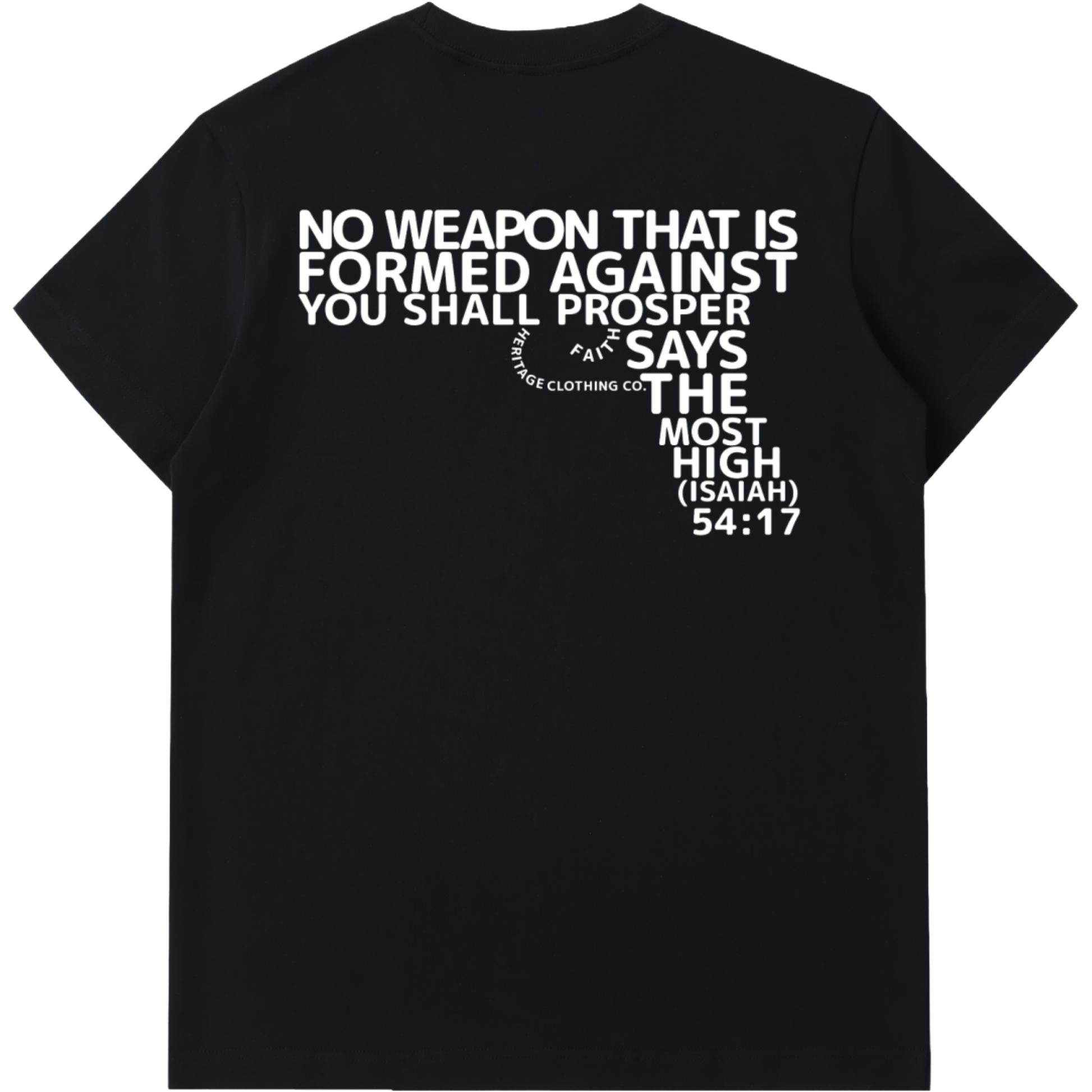 Crafted from 100% pure cotton with a moderate thickness, it offers lasting comfort and breathability, while the classic design and relaxed silhouette make it perfect for everyday wear. Inspired by the promise in Isaiah 54:17, “No weapon that is formed against you shall prosper,” this t-shirt declares that you are armed with faith and covered by Yahuah’s power.