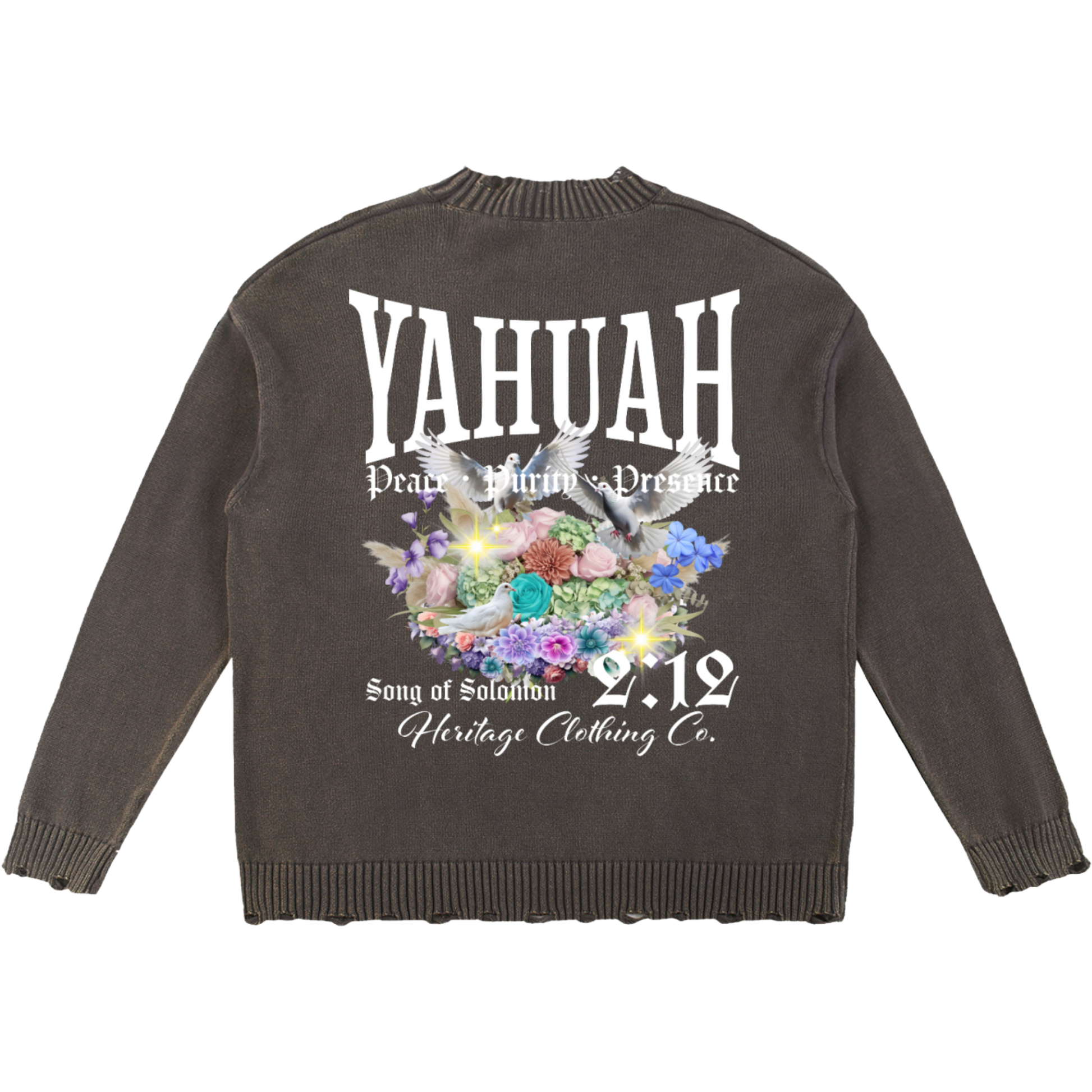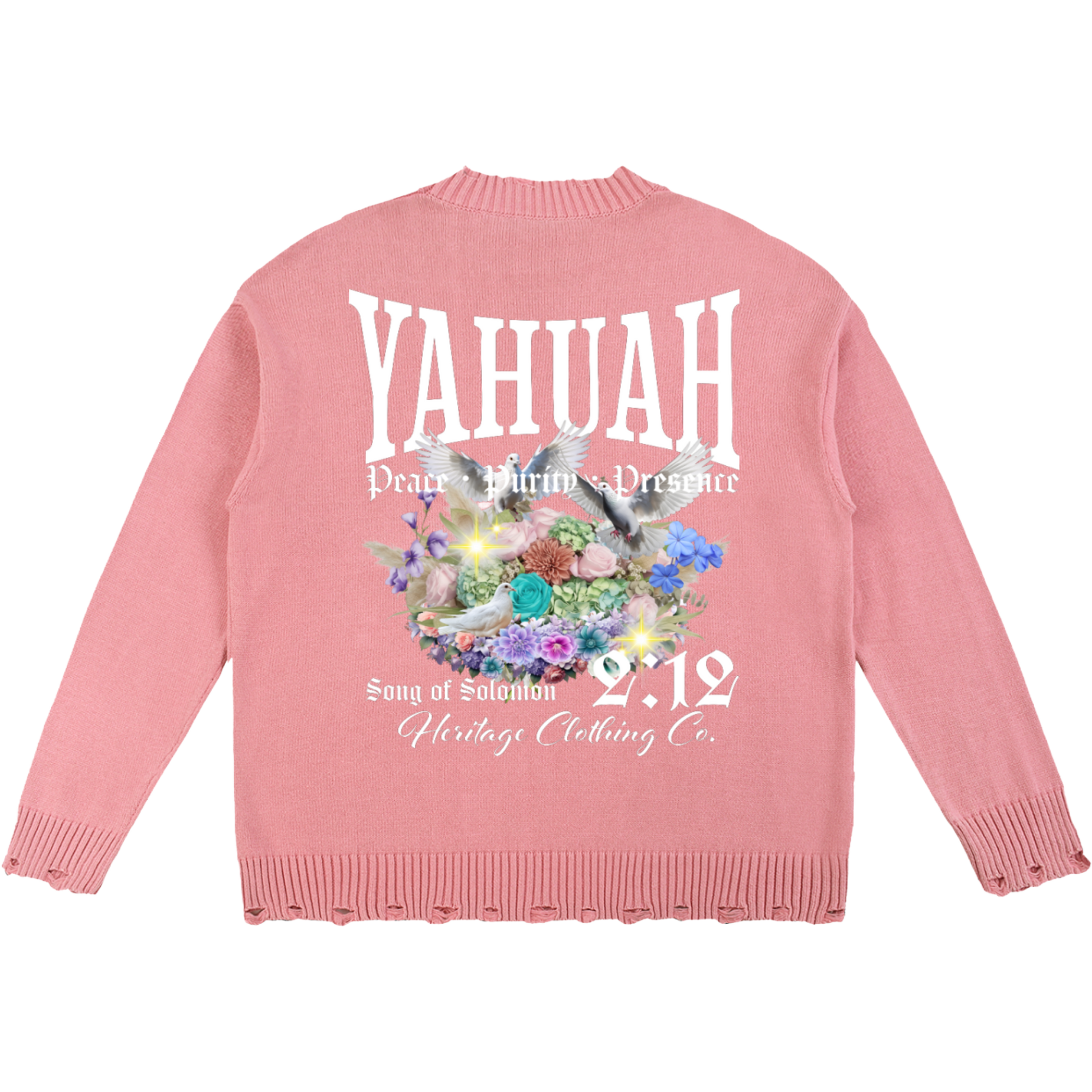 The Peace Purity and Presence women’s vintage frayed sweater is inspired by Song of Solomon 2:12, “The flowers appear on the earth; the time of the singing has come, and the voice of the turtle dove is heard in our land.”