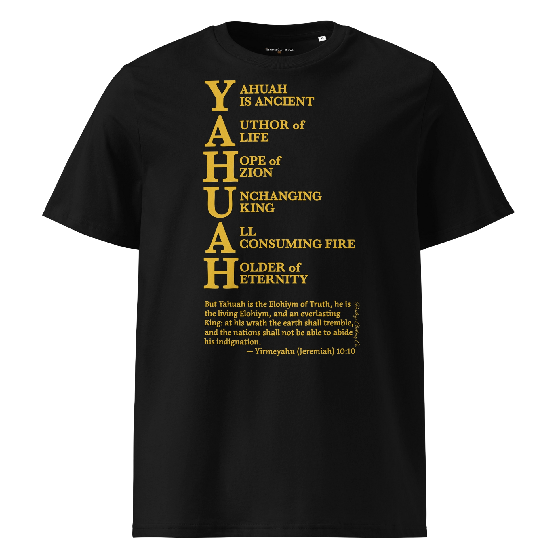 Inspired by Jeremiah 10:10, “But Yahuah is the Elohiym of Truth, He is the living Elohiym, and an Everlasting King…”, this t-shirt is more than just a piece of clothing—it’s a testimony.