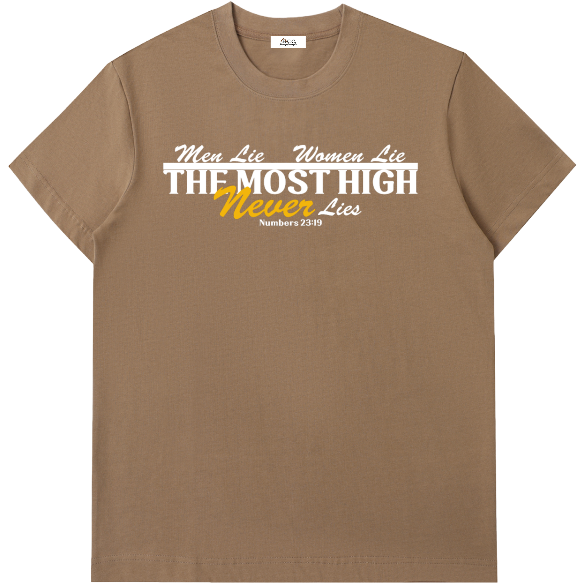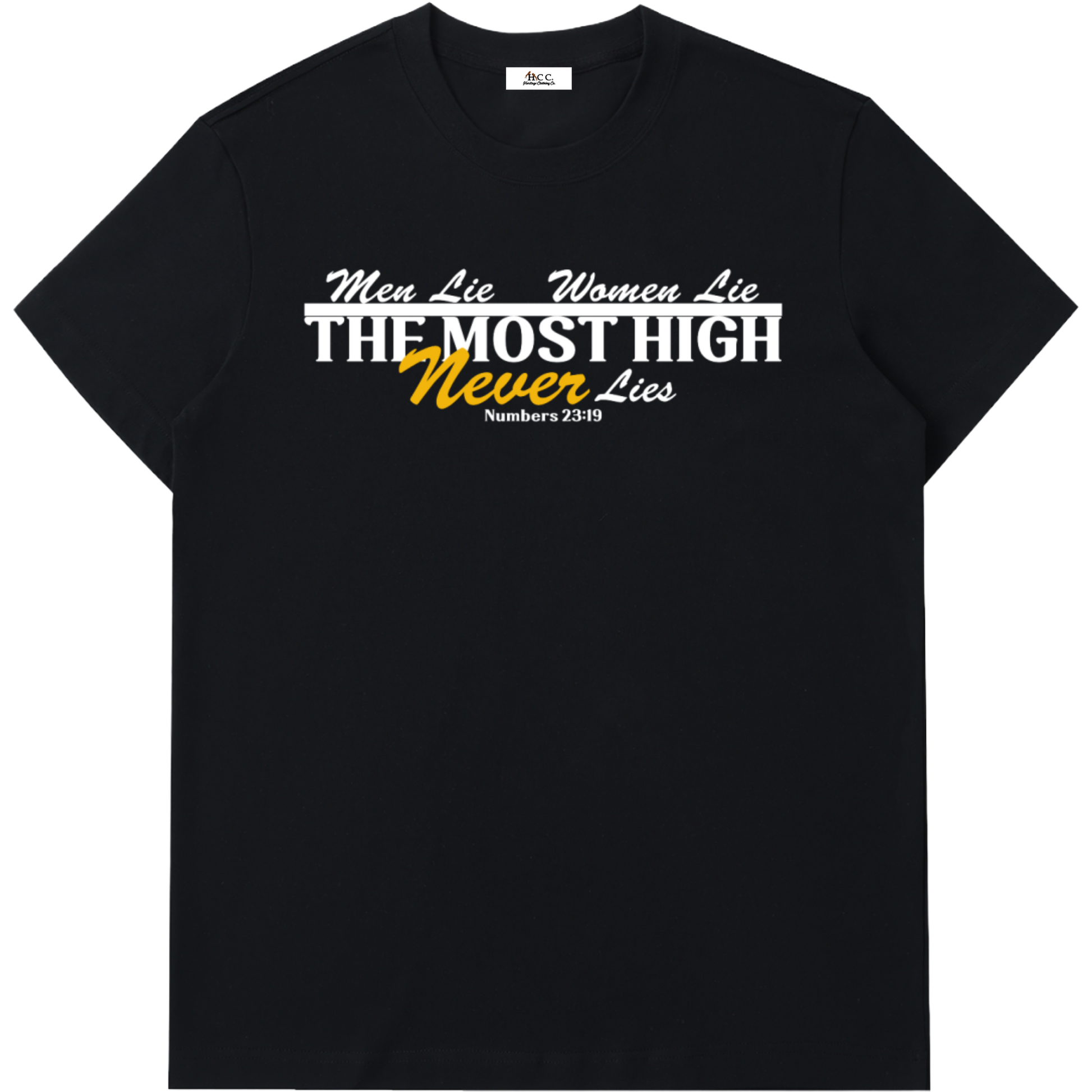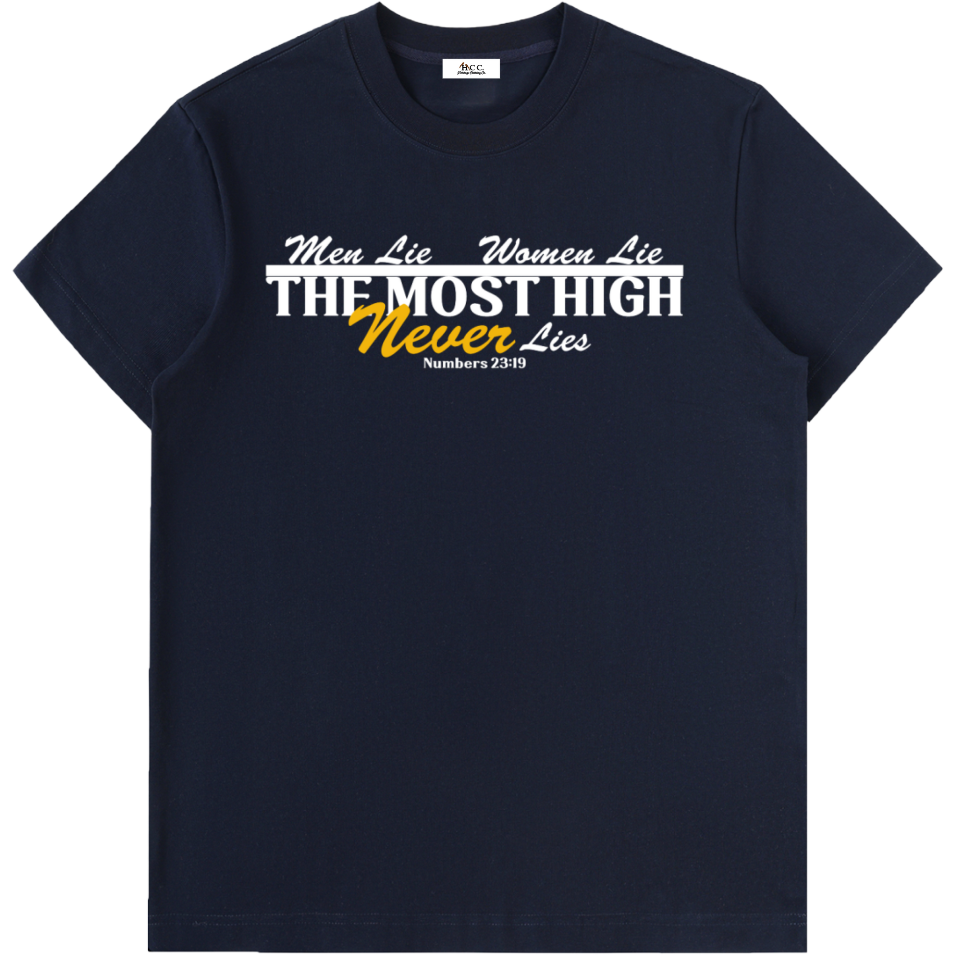 Declare the unshakable truth with the “The Most High Never Lies” t-shirt, inspired by Numbers 23:19: “Yahuah is not a man, that He should lie.”