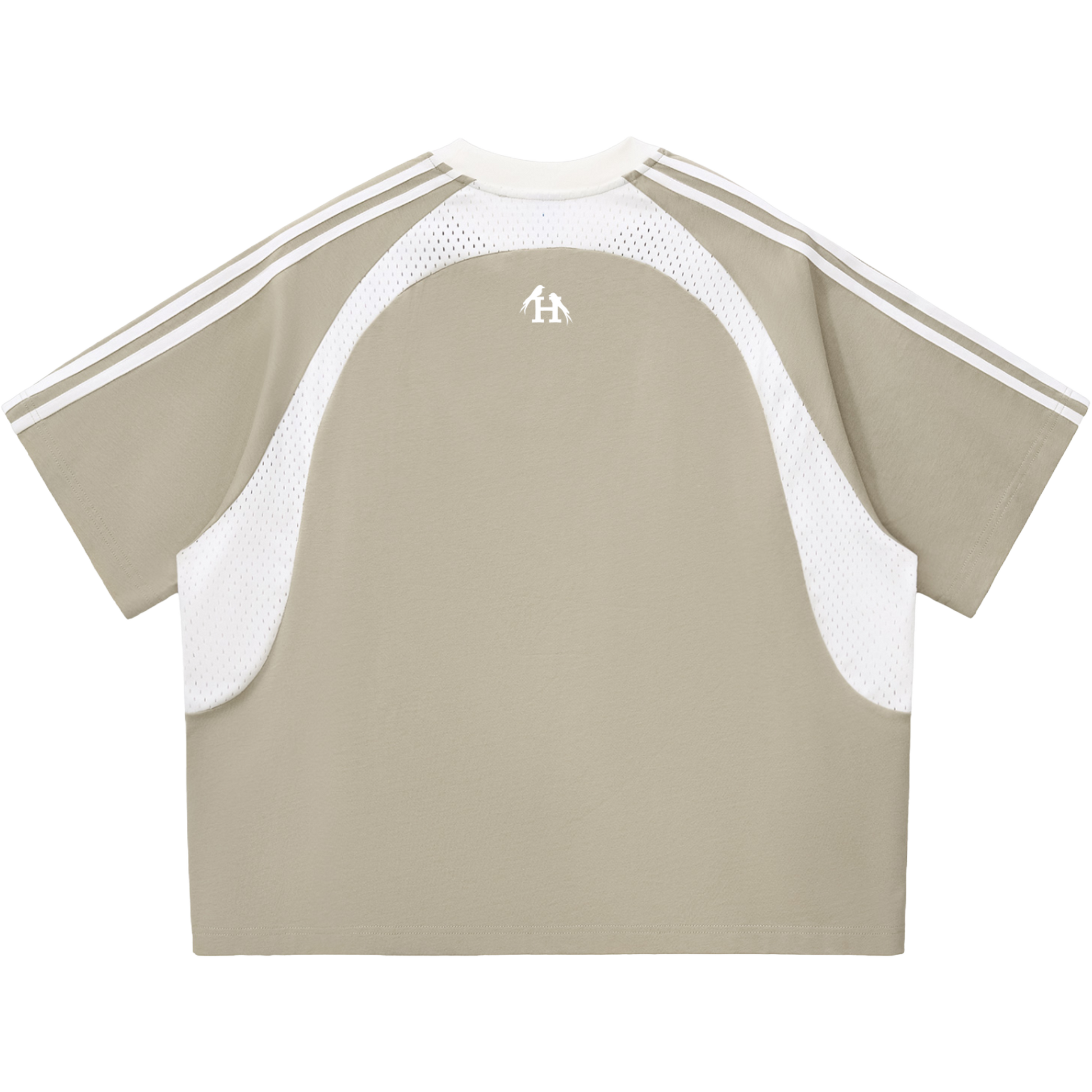 Crafted from 100% pure cotton with a moderate thickness, this t-shirt delivers breathable comfort and an effortlessly relaxed fit for daily wear. The raglan sleeves, contrast mesh panels, and oversized silhouette bring a sporty yet refined edge, making it ideal for casual days or active moments alike.