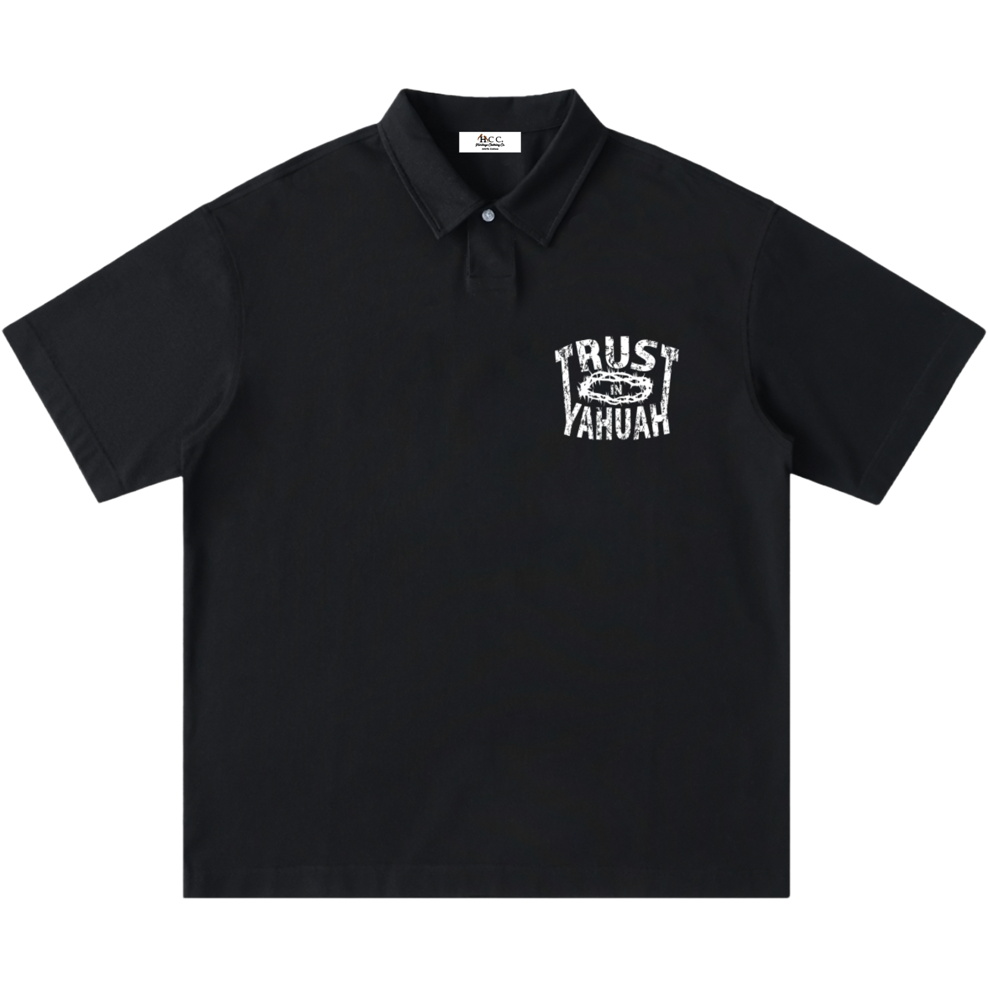 Stand firm in faith and refinement with the “Trust In Yahuah” men's one-button short-sleeve polo shirt — a clean, elevated take on devotion and daily strength.
