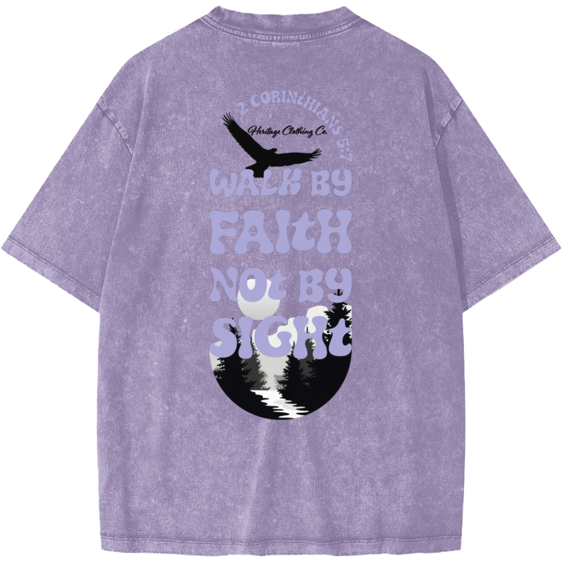 Step forward with confidence and purpose in the “Walk By Faith” women’s snow washed short-sleeve t-shirt, inspired by 2 Corinthians 5:7 — For we walk by faith, not by sight.