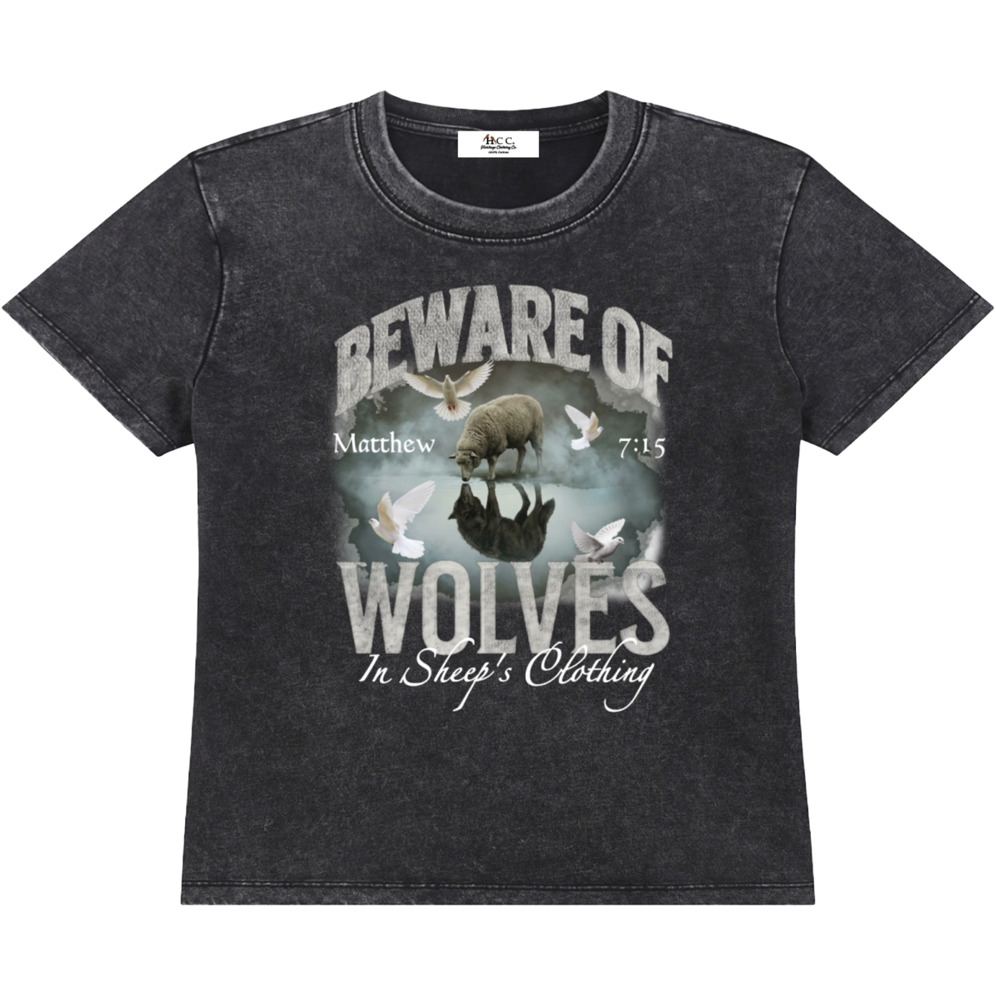 "Wolves In Sheep’s Clothing" women’s vintage t-shirt — a statement piece rooted in awareness, reflecting the warning recorded in Matthew 7:15 to beware of those who disguise harm behind a false identity.