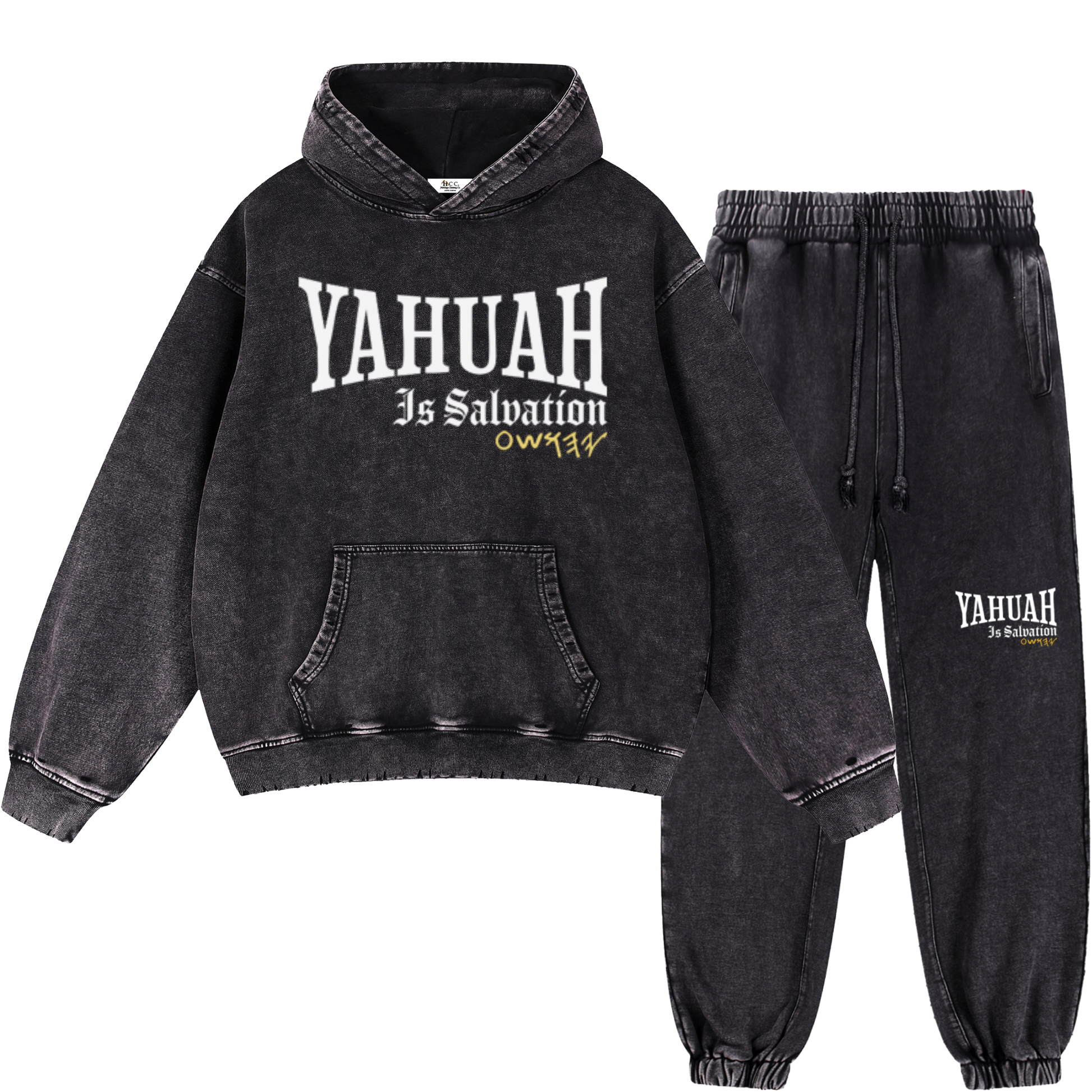 Declare strength and redemption with the “Yahuah Is Salvation” men’s black vintage heavyweight sweatsuit bundle — a complete expression of truth and devotion to the Name above all names.